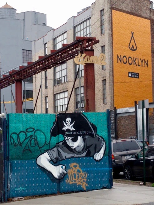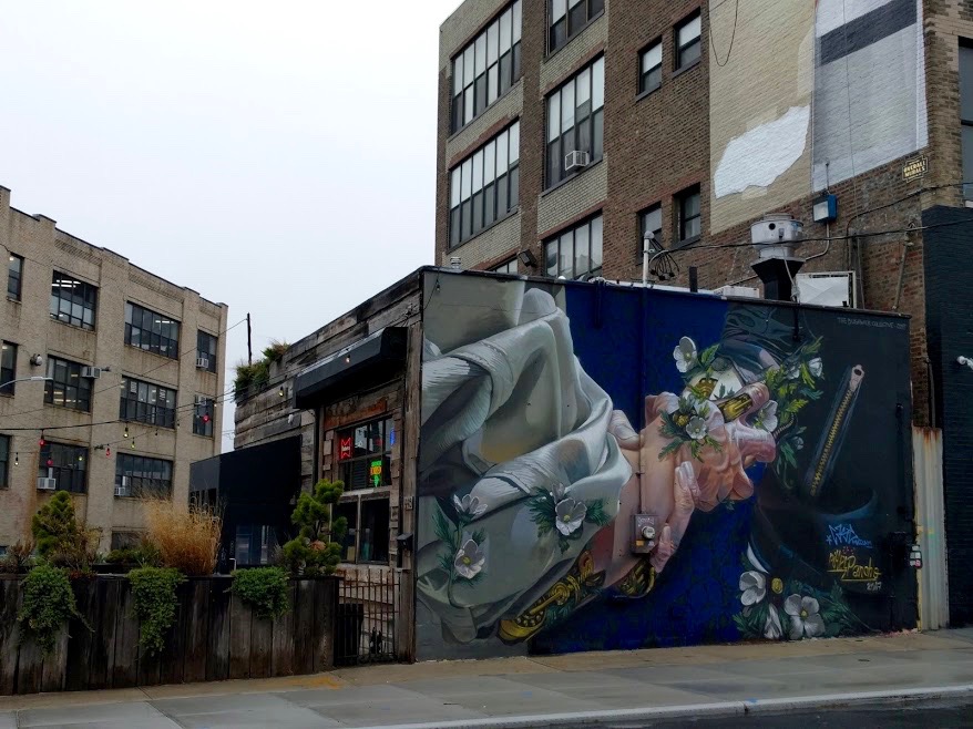 Daar ik op een vrij regenachtige dag in Bushwick rondliep, besloot ik om tussen de vlagen door de graffiti te bezichtigen. Tijdens de buien besloot ik het aangename aan het onaangename te koppelen en trok ik enkele plaatselijke bars in. Samen met mijn gezelschap brachten we best een aardig lange tijd in Bushwick door waardoor er een soort cocktail en graffiti crawl ontstond.
